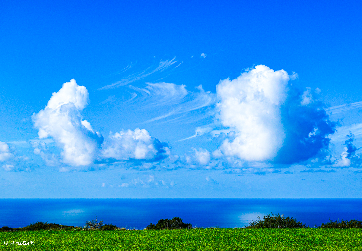Otroligt cool bild med dom vita molnbumlingarna på den klarblå himlen. Superfint!