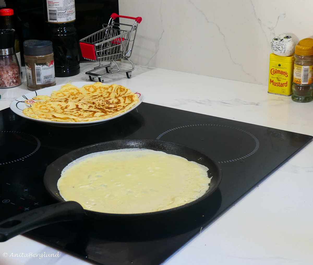 Tänkte inte på det som var runt omkring, maken var den som stekte pannkakorna. Nu blev den lilla kundvagnen ett roligt inslag i det hela. Haha.. tack snälla!