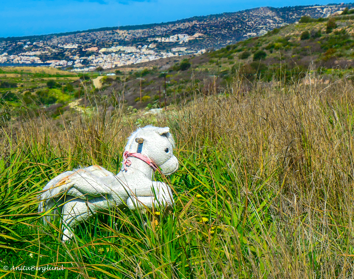 När jag såg gunghästen första gången hängde upp på en stor buske. Efter att jag passerat ett antal gånger tog jag ner den och ställde den på marken. Ja, man kan fråga sig varför den hamnat där. 🙃