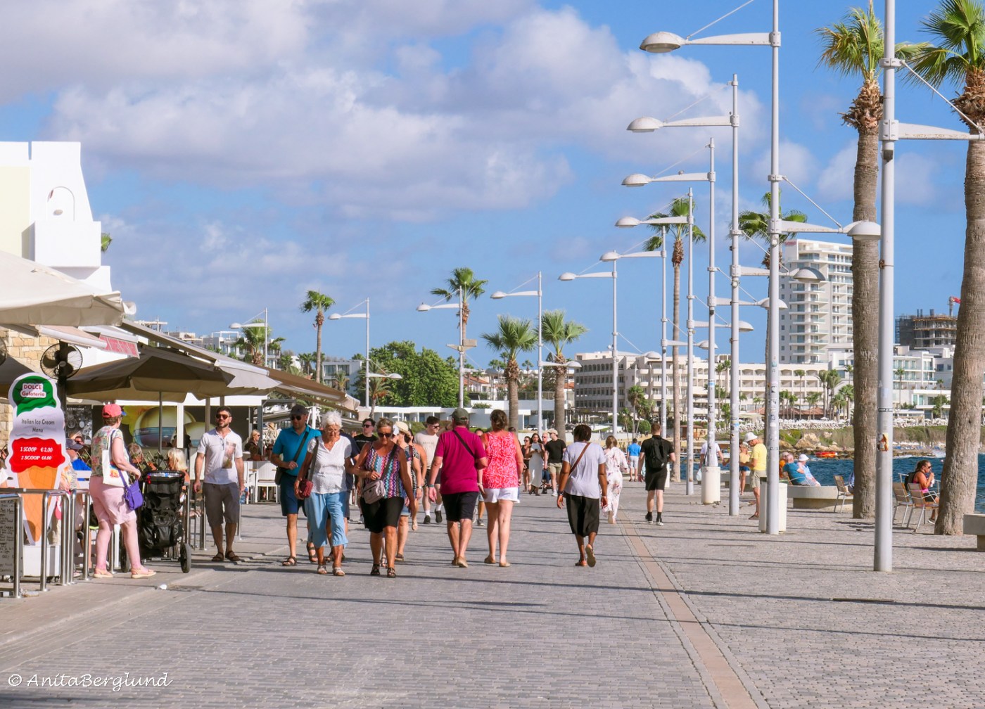 Några bilder från flanerande människor utmed havspromenaden i Paphos hamn.