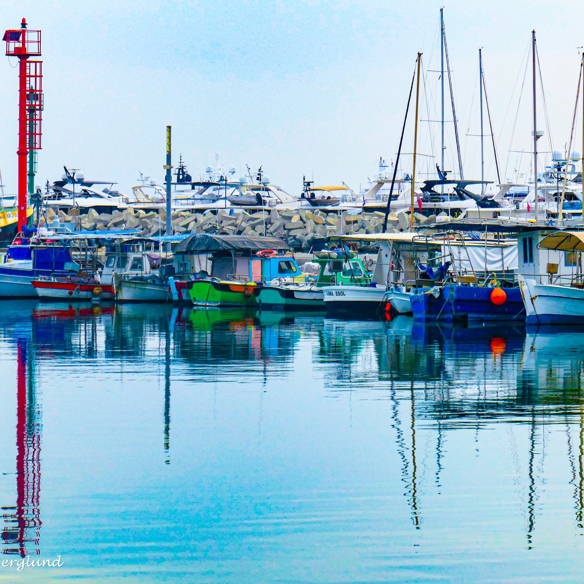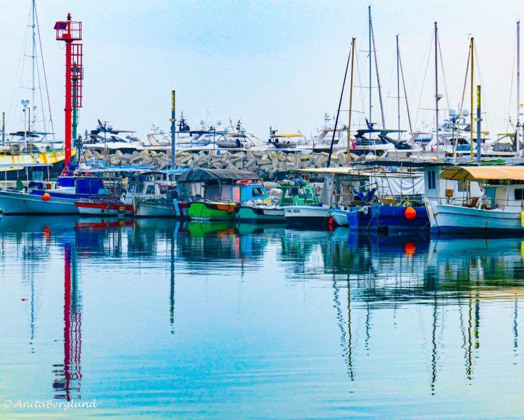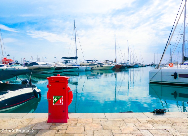 Vi åker till hamnen, för att gå utmed den långa havspromenaden. Vi är i början av november, temperaturen ligger nära 30°C, men det känns inte alls lika varmt som det gör på sommaren. Till varje bild nedan finns en kort text.