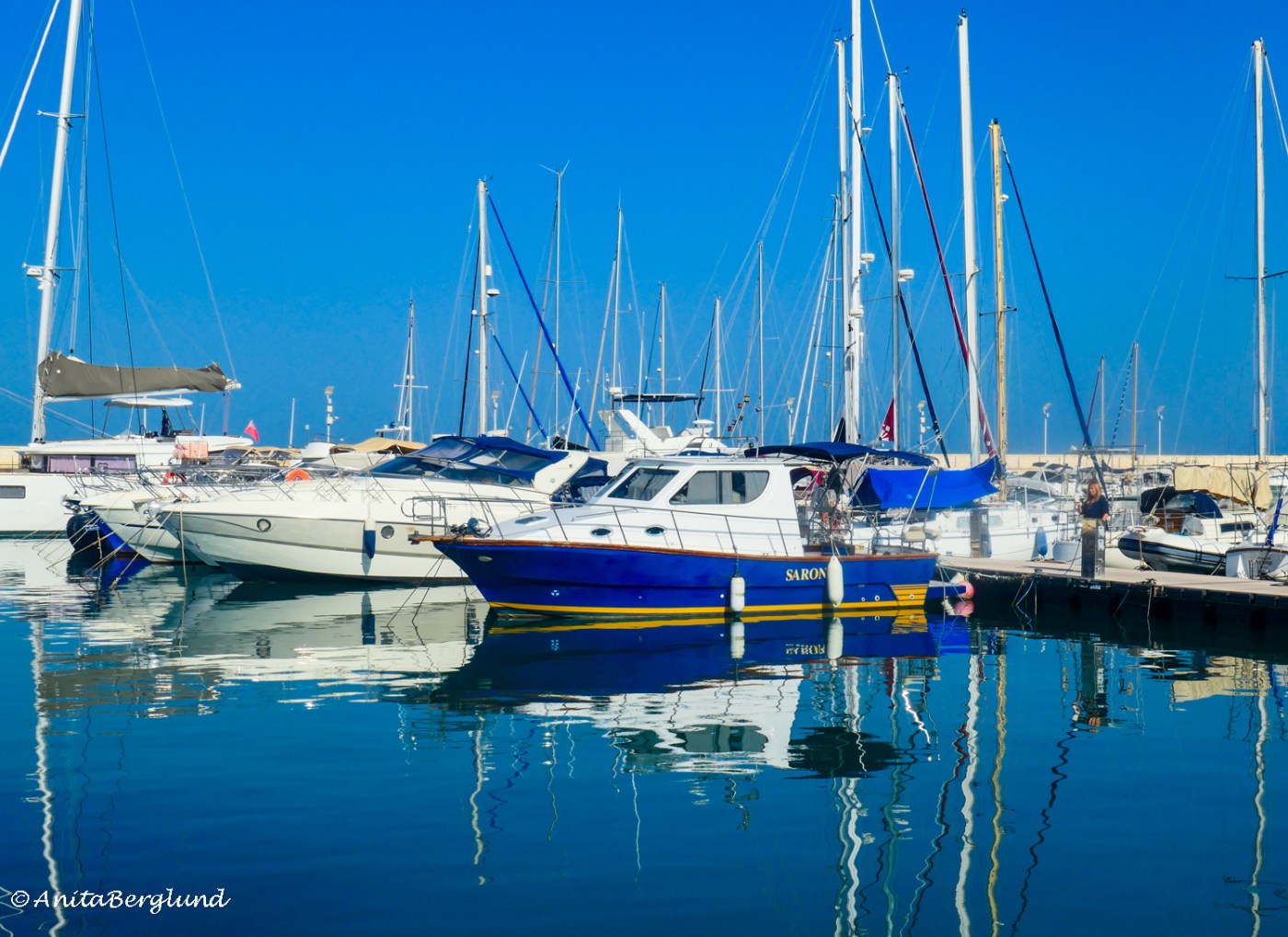 Istället åkte vi till Latchi marina, som ligger strax intill, för att söka lite skugga och titta på båtarna. Och där låg Prins Harry och guppade i hamnen, en oväntad kunglig namne i det blå.