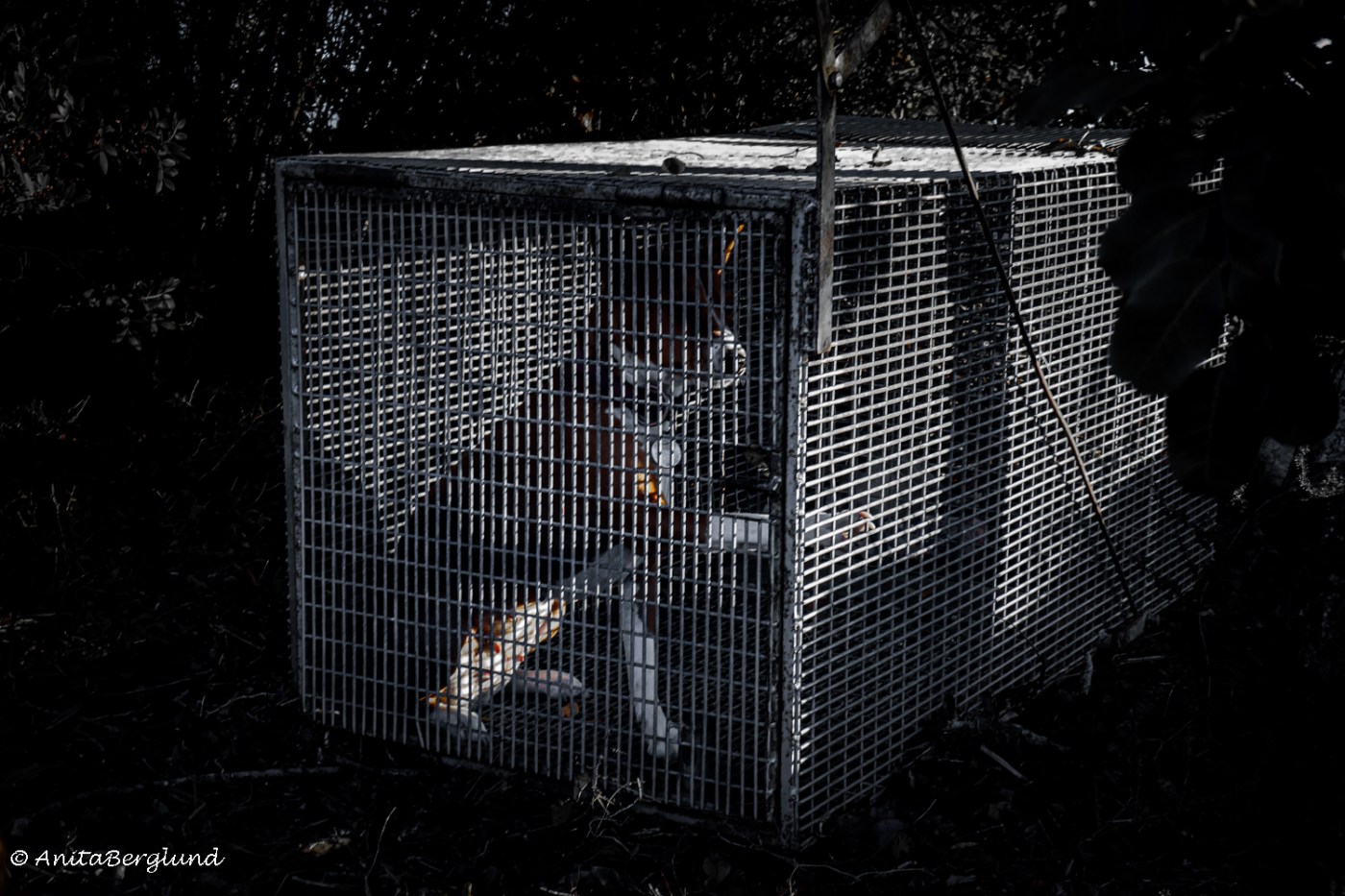 Min fina Felicia, vad som lockade henne in i fällan var köttbenen som låg där, som hon inte kom åt. Den behjälpliga mannen sa att buren var olaglig och troligen avsedd för att fånga räv. Felicia hade i princip fastnat i en rävsax, som tur var en burfälla och inte den farligare sorten. 💜💜💜