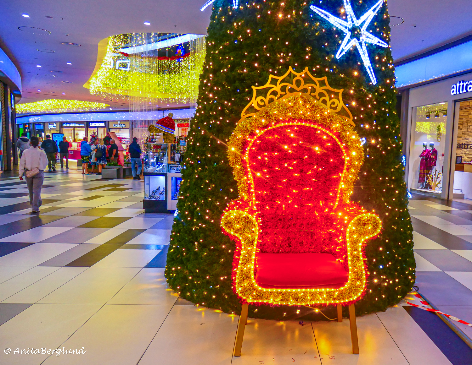 Ja, stolen är nog lite för mycket men ändå ett ganska kul inslag bland alla jultomtar och dekorationer.