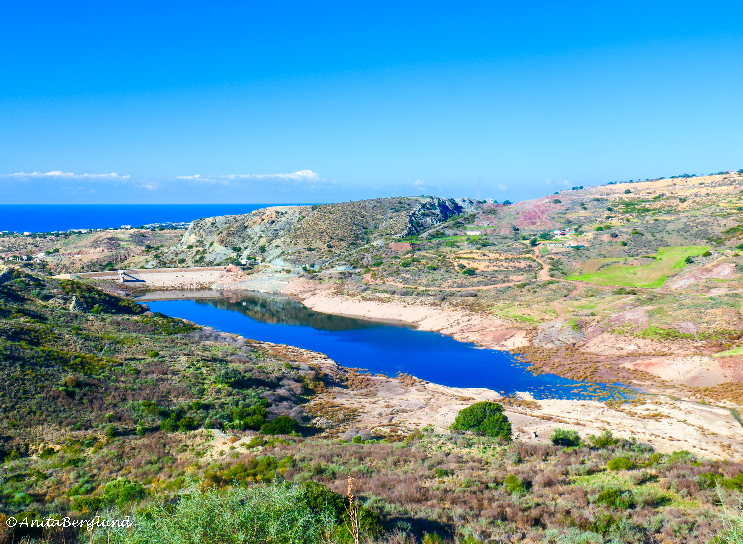 Bilder över Mavrokolympos damm tagna idag, 14 december. Det har regnat en hel del, det går åt rätt håll, snart är dammen återigen som den en gång var, innan den helt tömdes på vatten i slutet av januari. Nu speglar den himlen igen och årets tolv bilder av dammen är kompletta.