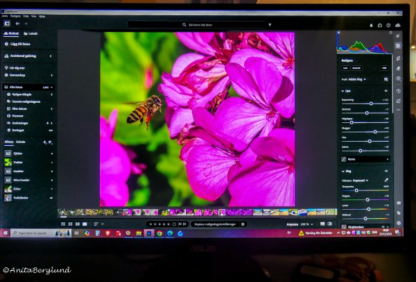 Ögonblick i vardagen, fångade med kameran, formade genom redigering och delade vidare. Det är kreativa stunder för mig, som jag gärna lägger mycket av min tid på. Den övre bilden är ett foto av min datorskärm med redigeringsprogrammet Lightroom öppet. Det blev inte riktigt som jag tänkt, att lyfta fram det kreativa, men ändå ett... Fortsätt läsa →