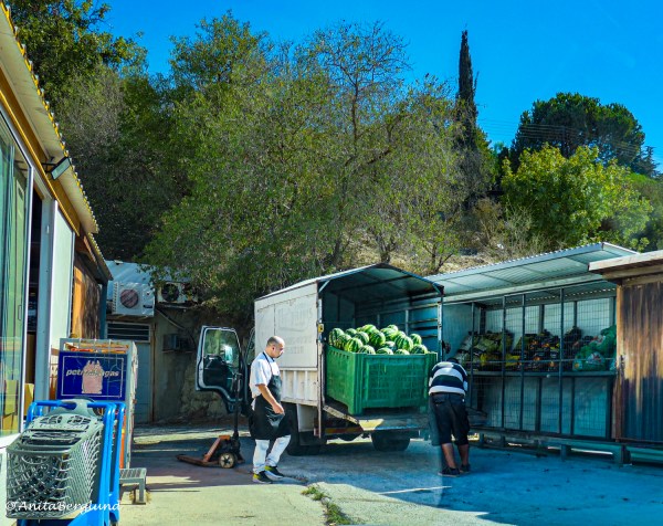 Leverans av vattenmeloner till handelsboden som jag besökte i ett tidigare inlägg. Gissar att det var den sista leveransen för i år. Säsongen för vattenmeloner börjar gå mot sitt slut.