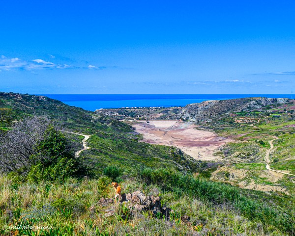 Mavrokolympos Damm som jag bestämt mig för att fota varje månad är ännu tom på vatten. För att få lite variation valde jag att stå på en annan plats än tidigare, cirka 450 m.ö.h.
