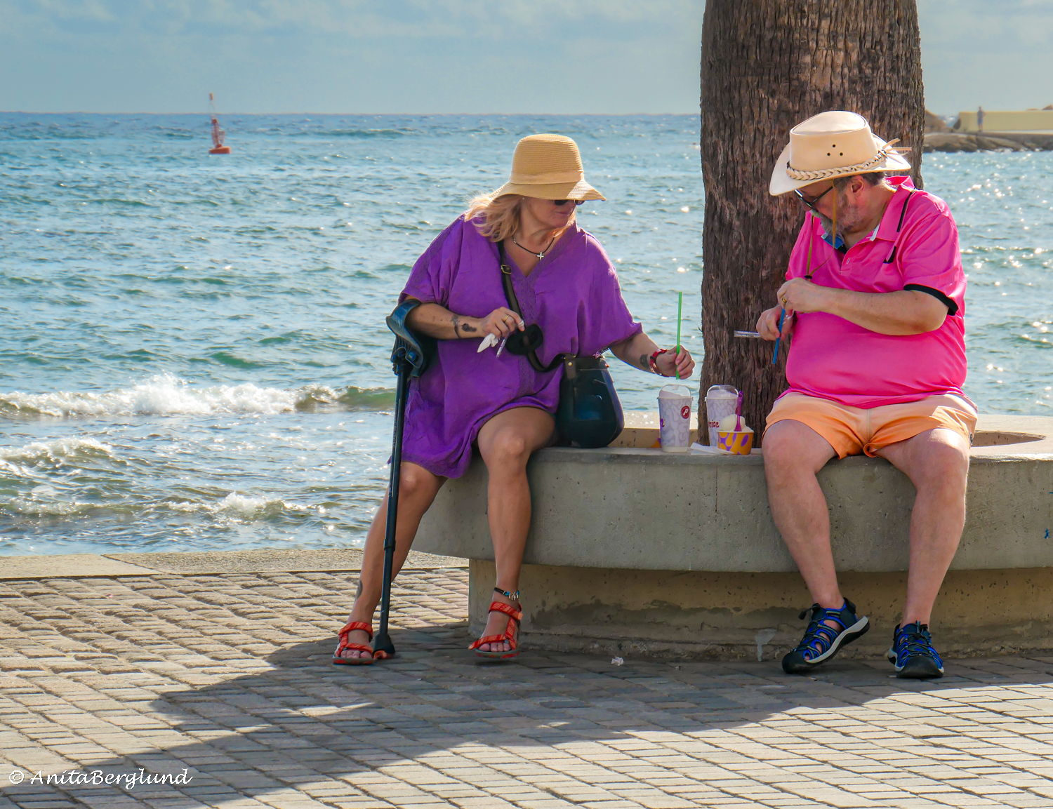 Här har hon sin hatt och i samråd har de bestämt sig för att ta en glass och något att dricka utmed hamnpromenaden i Paphos. Samråd är synonymt med överläggning ))