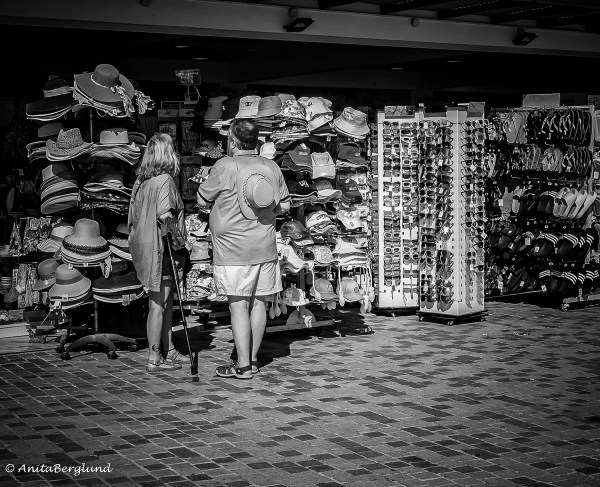 Det här paret stod ganska länge och tittade på de olika huvudbonaderna. Han har redan en, och jag gissar att det pågick en överläggning om vilken som skulle passa henne bäst. Här har hon sin hatt och i samråd har de bestämt sig för att ta en glass och något att dricka utmed hamnpromenaden i... Fortsätt läsa →